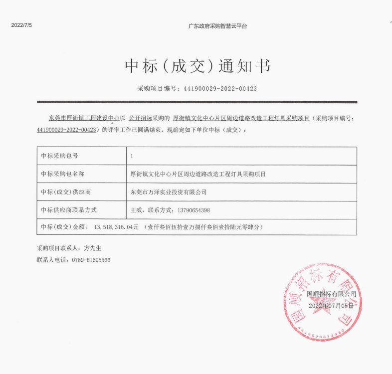 百舸争流千帆竞,乘风破浪正远航。7月5日,亚搏电子竞技(中国)股份有限公司喜讯连连!我司连续中标两个项目,分别为厚街镇文化中心片区周边道路改造工程灯具采购项目与东莞市高埗镇冼沙股份经济联合社社区环卫保洁服务采购项目,中标金额合计超1882万元!
